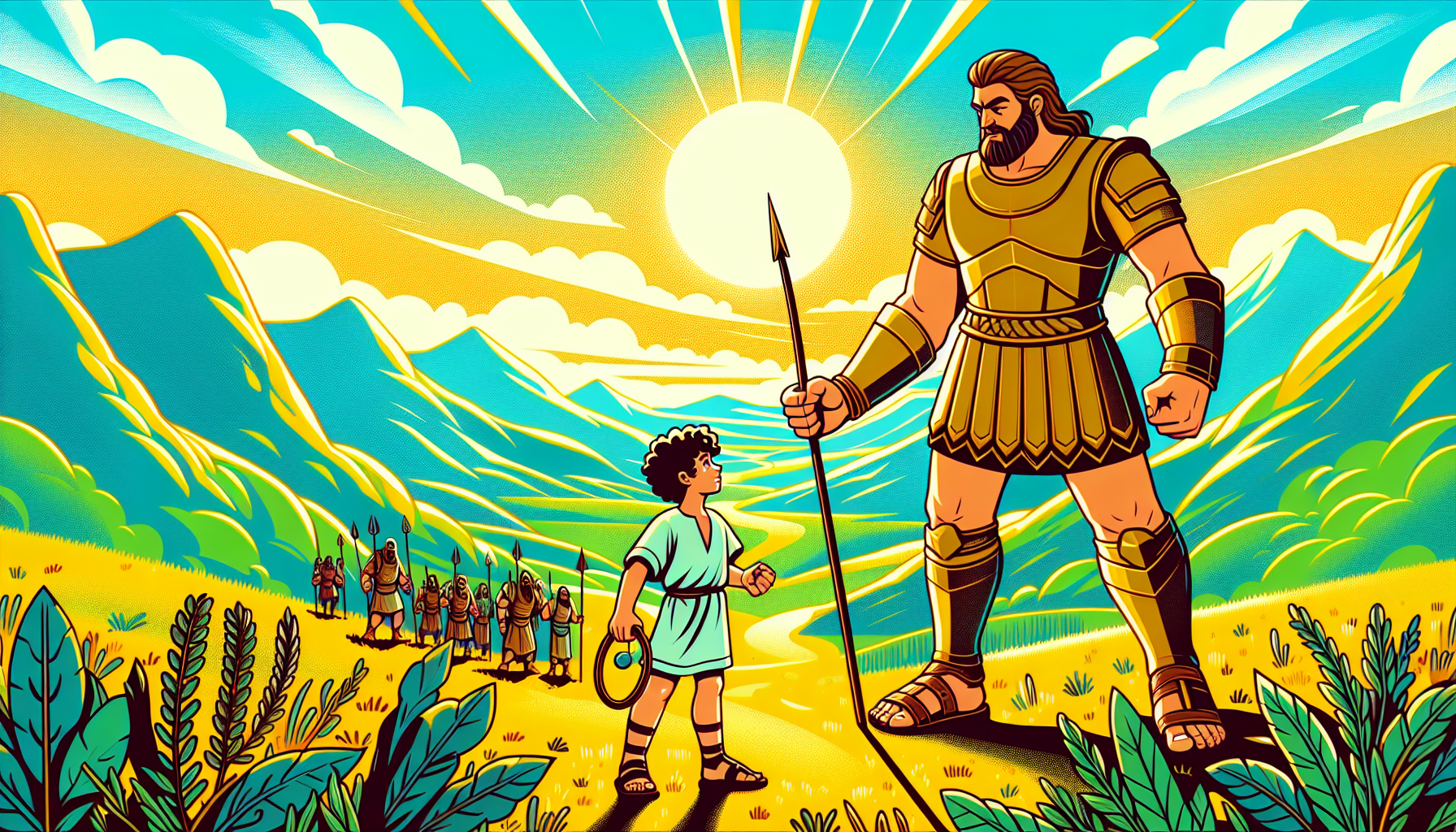 That day, David showed that even a small boy can be brave when God is with him. The sun shone bright, and the birds sang songs of joy. David’s heart was full of happiness and trust in God’s great power.